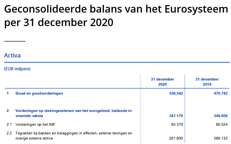 Die stelt immers dat de officiële externe reserve-activa welke zij op haar eigen balans tot uiting brengt: