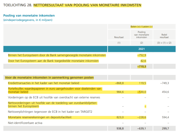 Zoals ook blijkt uit het jaarverslag van de NBB over het boekjaar 2021 werd er over het Eurosysteem geen seigneuriage verdiend, en dus ook niet verdeeld.