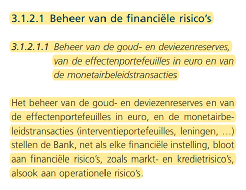 De Nationale Bank van België draagt, net als elke andere financiële instelling en centrale bank, ALLE financiële risico’s met het afgescheiden eigen vermogen van de vennootschap.