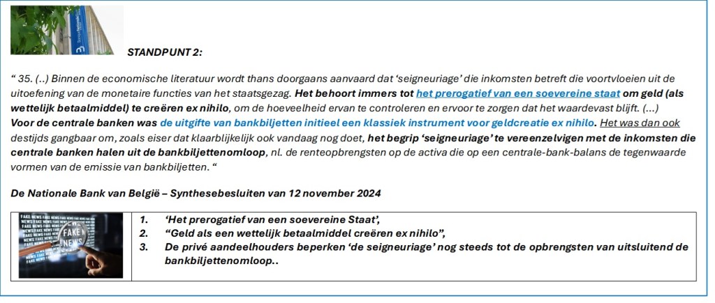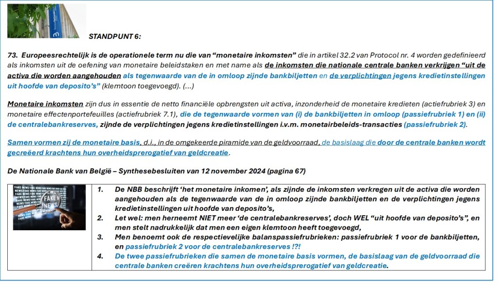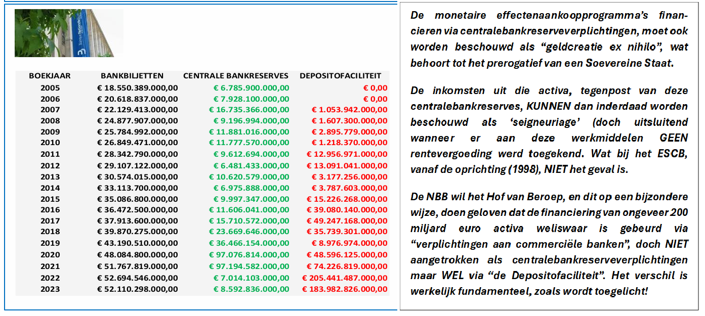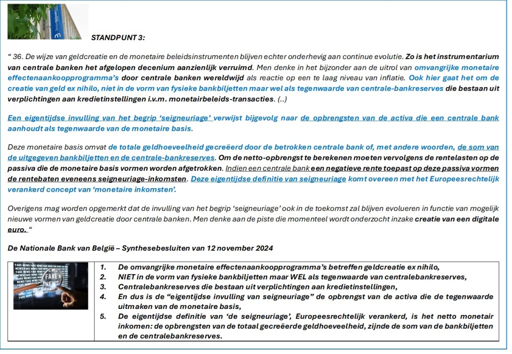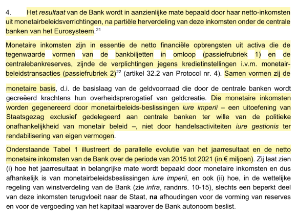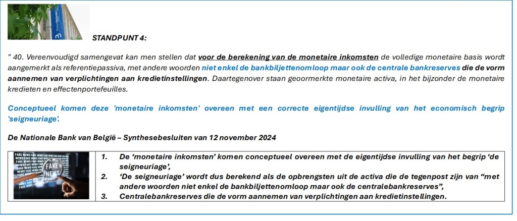 De Belgische Wetgever had het toch onbetwistbaar over een “bijzondere relatie NBB – Belgische Soevereine Staat” om uitsluitend het economisch voordeel van het surplus van ‘de seigneuriage’ te waarborgen, en NIET over het monetair inkomen ?!