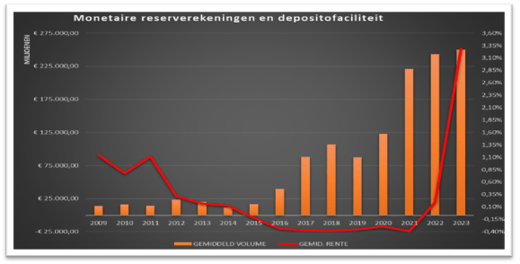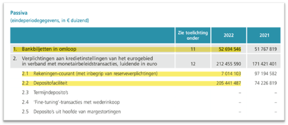 De passiefbalanspost “2.2 Depositofaciliteit” is een component van de referentiepassiva die bijdraagt uitsluitend aan ‘het monetair inkomen’.