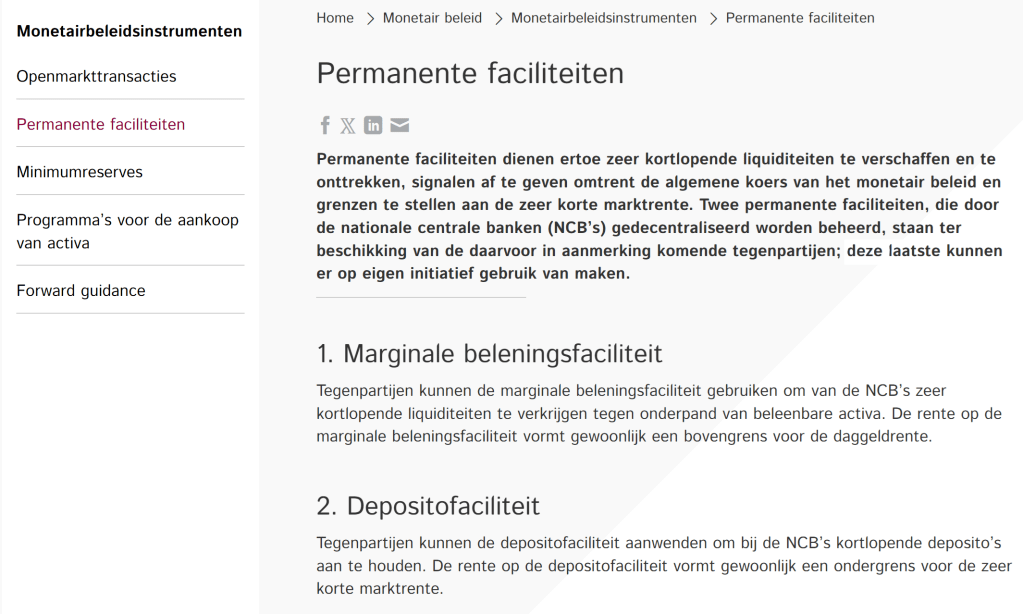 - Technisch Instrument: De depositofaciliteit is een technisch hulpmiddel waarmee banken hun overtollige reserves bij de centrale bank kunnen parkeren tegen een rentevergoeding. Dit beïnvloedt de korte termijn rentetarieven, maar heeft geen directe impact op de geldcreatie zoals reserveverplichtingen dat doen.