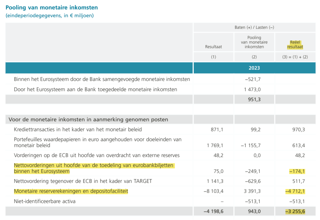 Inderdaad gebeurt zowel de pooling van de ‘monetaire inkomsten’ om voor elke NCB het nettoresultaat te bekomen, met als een onderdeel ‘de seigneuriage’ (de nettovorderingen uit hoofde van de toebedeling van eurobankbiljetten binnen het Eurosysteem).