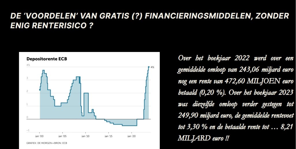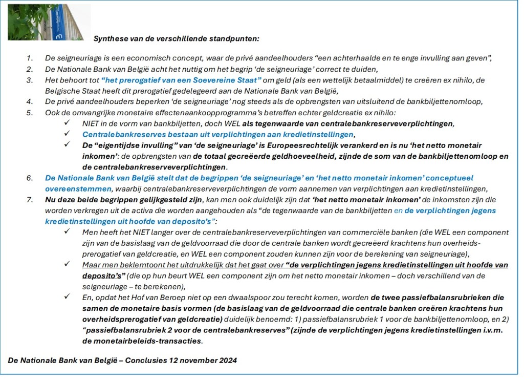 Noodgedwongen bereid zijn om het zelfs een Hof van Beroep op de mouw te spelden dan ‘de seigneuriage’ nu zou overstemmen met ‘het netto monetair inkomen’? Enkel maar om een belangrijker deel aan de winstbestemming te kunnen onttrekken, en over te dragen aan een Belgische (soevereine) Staat?