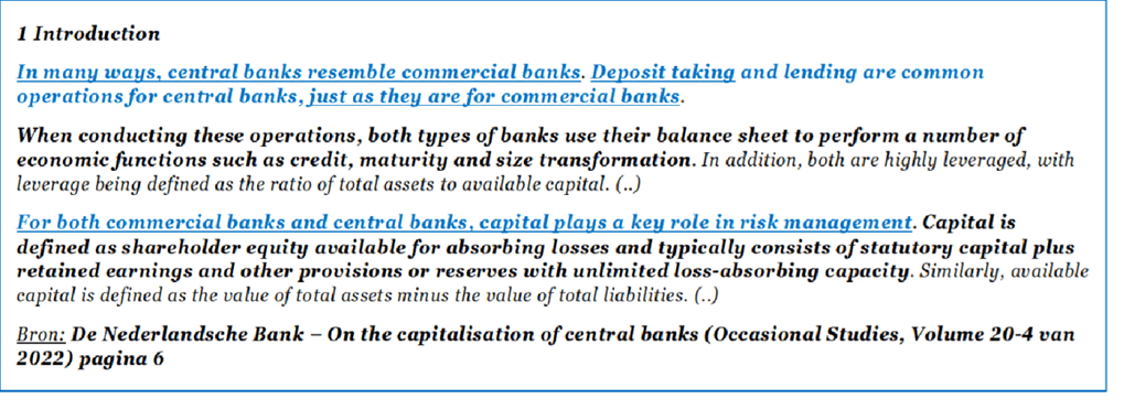 De Nationale Bank stelt het zelf correct: