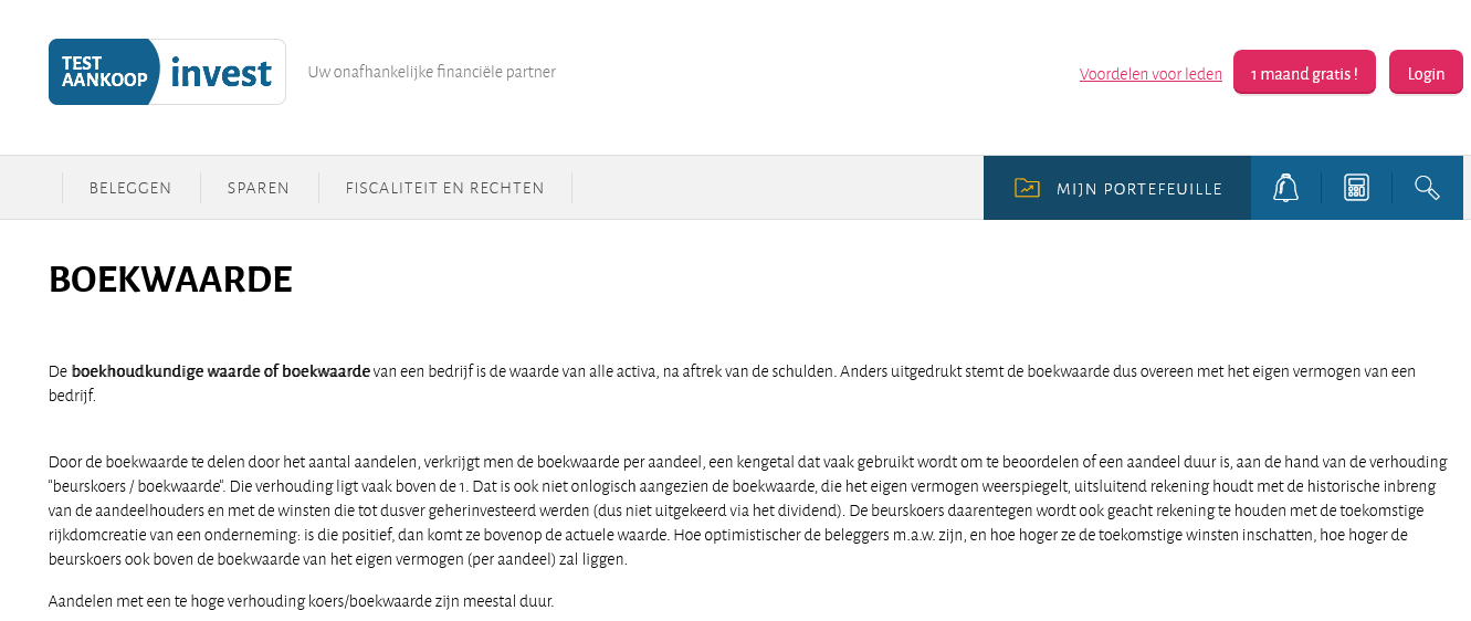 Test Aankoop Invest geeft volgende informatie omtrent die verhouding beurskoers / eigen vermogen:
