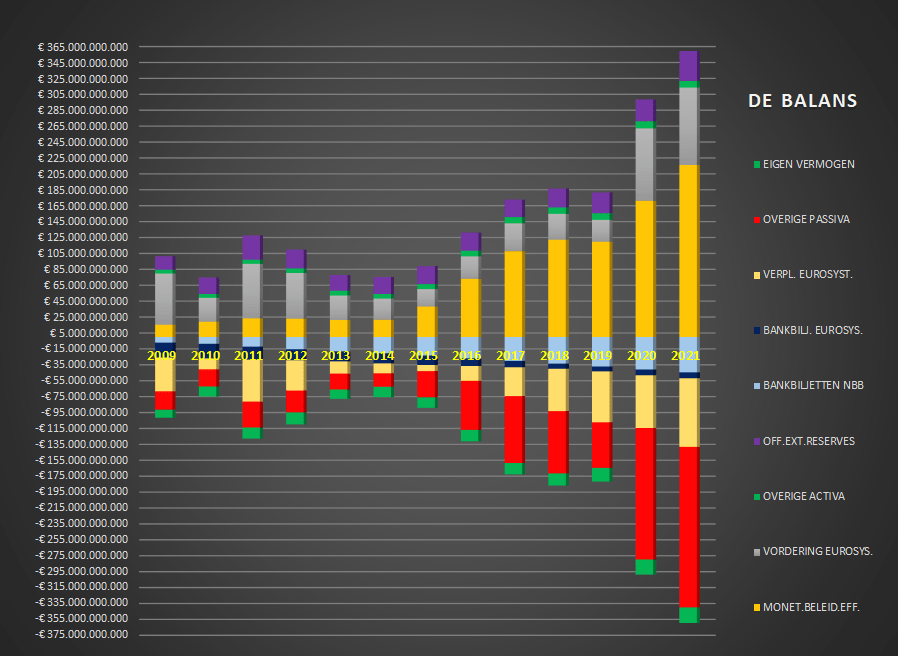 - de Nationale Bank van België zou ALS TEGENPRESTATIE VOOR DIT RECHT haar opbrengsten over deze 51,77 miljard euro eigen werkmiddelen dus NIET laten toekomen aan haar eigenaars (zoals de ECB en de andere NCB’s), doch WEL afstaan aan de Soevereine Belgische Staat,