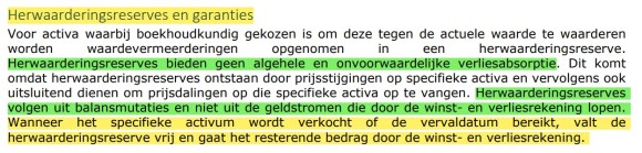 Bij De Nederlandsche Bank: wanneer herwaarderingsreserves vrij komen, dan gaan deze bedragen door de winst- en verliesrekening, zijn ze toe te rekenen tot de kapitaalpositie, of worden ze uitgekeerd. Van fundamenteel belang: 1) indien uitkeerbaar: aan de aandeelhouders, of aan een Soevereine Staat ? 2) indien te reserveren: dan kan dit enkel wanneer het vermogen belegd in de activa uitsluitend aan de vennootschap EN aan haar aandeelhouders toebehoort.