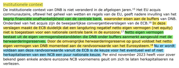 En, enkel indien voldaan is aan deze voorwaarden, ENKEL DAN kan de Gouverneur van de Nationale Bank van België het standpunt verdedigen dat de financiële onafhankelijkheid niet in vraag kan worden gesteld, dat “een herkapitalisatie” door de aandeelhouders van de beursgenoteerde naamloze vennootschap NIET zal of kan worden opgelegd door de ECB !