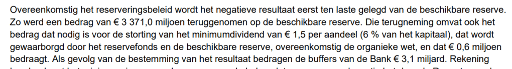 - En met het gewijzigde dividend- en reserveringsbeleid, waarbij de Soevereine Staat nu jaren geen surplus van seigneuriage zal ontvangen (als eerlijke vergoeding voor het verleende financieringsvoordeel), net zoals de verschaffers van het kapitaal geen vergoeding zullen krijgen voor dat kapitaal (en gelopen risico’s), en dit zolang er overgedragen verliezen geboekt staan (en er nadien ontoereikende buffers zijn)?