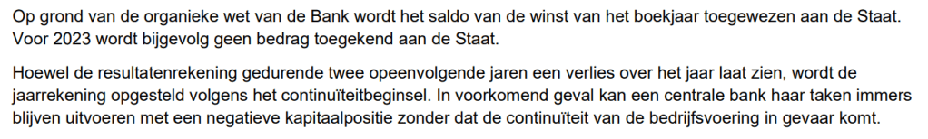 Gezien enerzijds de Regentenraad een verlies over het boekjaar 2023 heeft publiek gemaakt voor niet minder dan 3,37 MILJARD euro, en gezien de financiële communicatie vanwege de ECB zelf (en vooral DNB maar ook de BUBA),