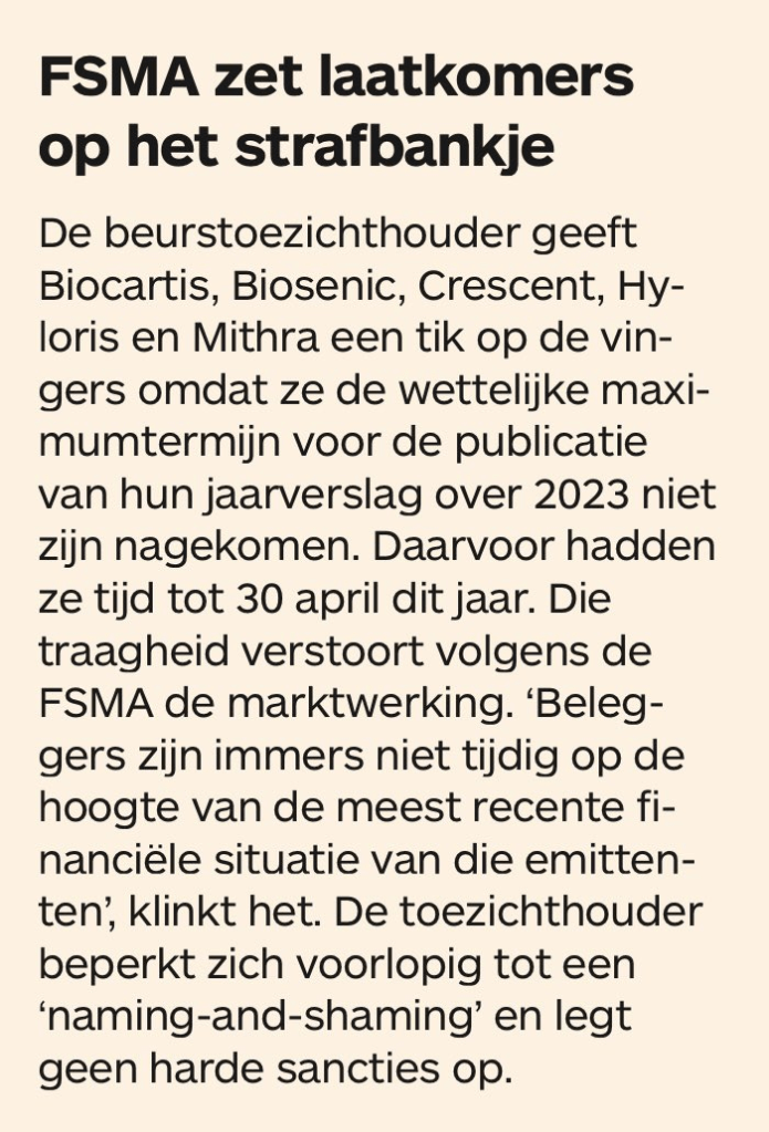 Mocht het zo zijn dat de Directie deze essentiële informatie nog steeds niet op ondubbelzinnige wijze ter beschikking stelt van haar private aandeelhouders, dan worden de verantwoordelijkheid van zowel de toezichthouder FSMA, van de nieuwe externe bedrijfsrevisor maar ook van ons onverschillig Parlement wel heel groot.