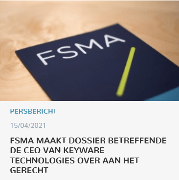 In 2020 startte de Autoriteit voor Financiële Diensten en Markten (FSMA) toezichtacties op met betrekking tot de financiële verslaggeving van Keyware, waarna het besliste een dossier over te maken aan de gerechtelijke autoriteiten in verband met transacties tussen Keyware Technologies en ondernemingen verbonden met haar CEO, Big Friend NV, vertegenwoordigd door Stéphane Vandervelde.