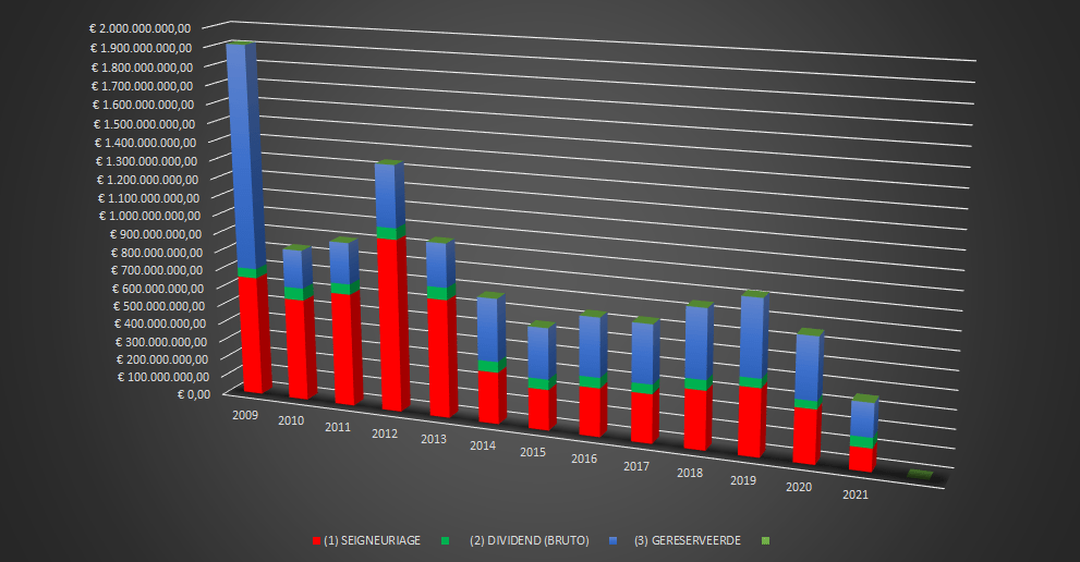 - Sedert 2016 kan het ESCB geen seigneuriage verdienen noch verdelen, en is er geen enkee grond meer om de Belgische Staat een “eerlijke en correcte” vergoeding voor het verkregen emissierecht toe te kennen,