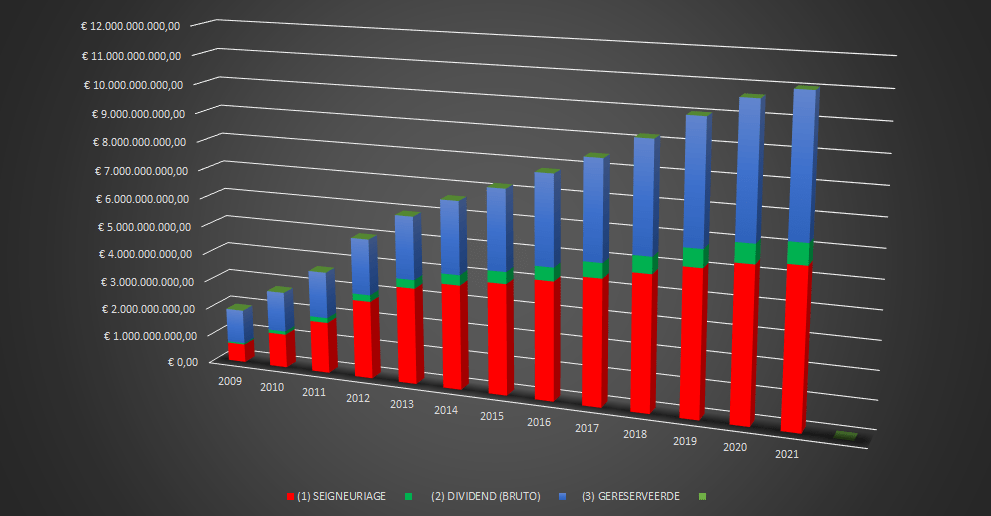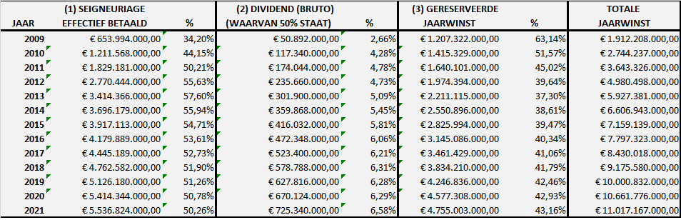 De onafhankelijke Regentenraad bestemt 6,58 % van de jaarwinsten als uitkeerbaar aan de aandeelhouders. Waarvan 3,29 % dus bijkomend aan … de Belgische Staat.