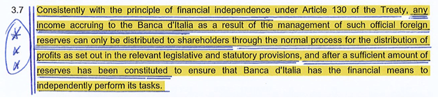 De verwijzing naar de Opinie van de Europese Centrale Bank, afgeleverd bij gelegenheid van een vraag van de Banca d’Italia, en handelt over “the ownership of gold reserves” zegt eigenlijk alles, maar wordt door de volksvertegenwoordiger niet verder opgenomen in zijn diepgravende analyse. Jammer, toch.