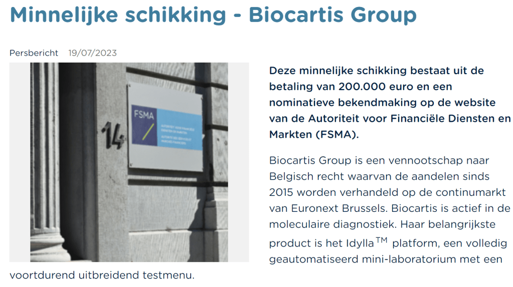 De feiten dateren van 2020, op 19 juli 2023 werd de markt geïnformeerd omtrent de feiten en een minnelijke schikking …