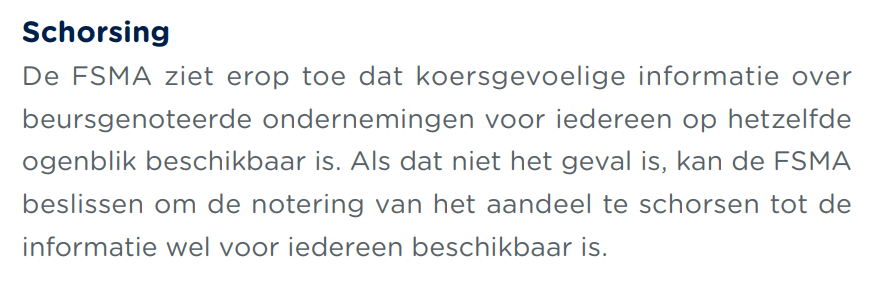 - een onderzoek moet worden afgerond vooraleer men kan schikken of boetes geven, maar is er onvoldoende info beschikbaar om een notering te schorsen? Om het bestuur te verplichten tot een correcte en volledige informatie?