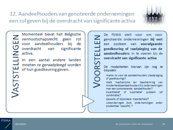 Goed bestuur zal inderdaad enkel maar belangrijker worden … - Het punt 12 van het strijdplan van FSMA slaat werkelijk alles: minderheidsaandeelhouders moeten VOORAF worden geraadpleegd EN hun goedkeuring geven bij de overdracht van “significante activa” ?!