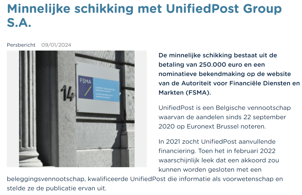 De feiten dateren van 2021-2022, op 9 januari 2024 werd de markt geïnformeerd omtrent de feiten en een minnelijke schikking …